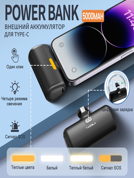 5000mAh Type-C Power Bank for iPhone 15/16 – LED Display & 4 Modes