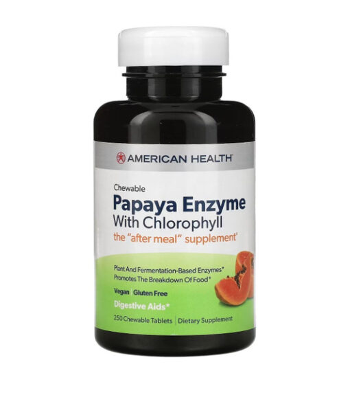 American Health Papaya Enzyme with Chlorophyll – 250 Chewables for Digestive Health
