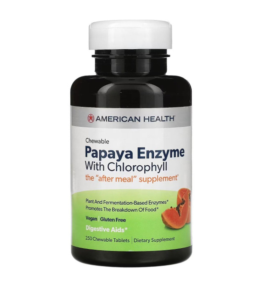 Support your digestive system daily with American Health Papaya Enzyme with Chlorophyll. This formula combines the natural digestive benefits of papaya enzymes with the refreshing properties of chlorophyll in convenient, chewable tablets.