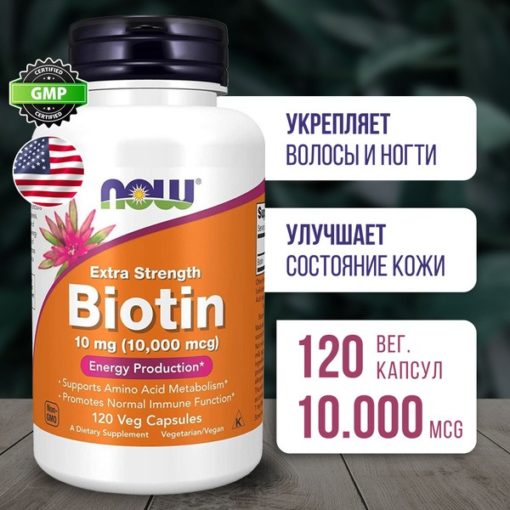 Biotin 10000 mcg (10mg) – 120 Capsules for Hair, Skin & Nails