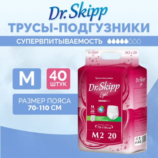 Dr. Skipp Light Adult Diaper Briefs, Size M-2, 40 Count (2 x 20)