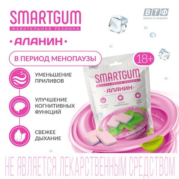 SmartGam Alanine Chewing Gum: Reduce Hot Flashes, Boost Cognition & Energy - 30 Tablets | GlobalHealingWeb – Worldwide Pharmacy Access