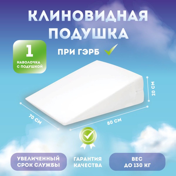 Experience superior comfort and relief from GERD with our clinically-designed wedge pillow. Its 15-degree incline significantly reduces (up to 95%) nighttime acid reflux and bile reflux, promoting better sleep and digestive health. This ergonomic pillow supports optimal heart function, reduces the risk of sleep apnea and facial swelling, and may even help prevent migraines. Ideal for GERD therapy and prevention, as well as general digestive health improvement. Large size (80 x 60-70 cm), 20cm high, filled with high-quality HS2225 polyurethane foam.